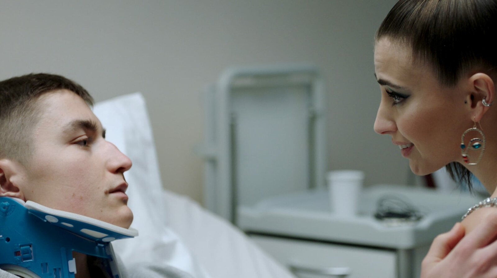 Verdammtes GefühlschaosNach seinem Unfall besucht Elsa (Dilan Gwyn) ihren Freund Aron (Gustav Lindh) im Krankenhaus.Bild: © Viaplay/Frida Wendel