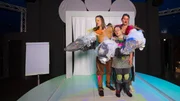 GeschwisterFür ihr Stück "Der Mythos beginnt! Ein Schwesternprojekt" stehen, von links: Christina, Theresa und Elisabeth Schelhas in Berlin auf der Bühne. Drei Schwestern, die einander als "dreiköpfiges Orakel" schonungslos die Meinung sagen. Was ist anders, wenn eine Schwester das Down-Syndrom hat und spielt das überhaupt eine Rolle?Bild: © ZDF und Jens Jeske./Jens Jeske