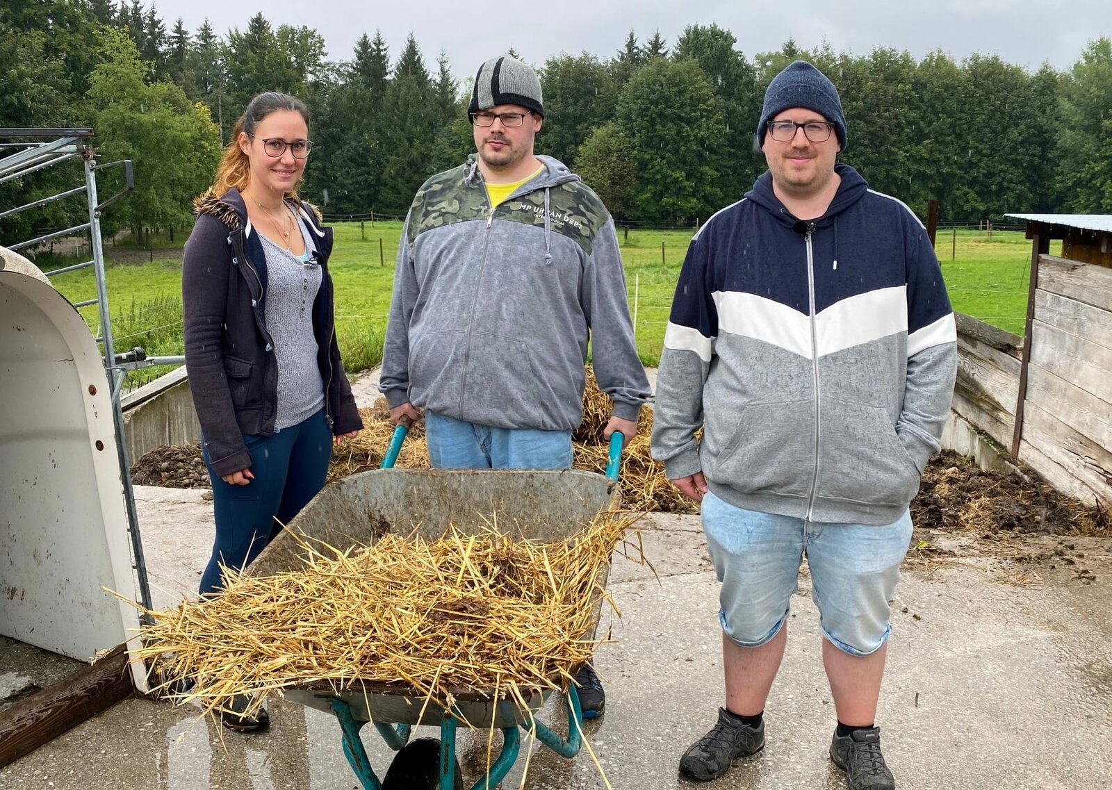 Markus (r.) und eine Nachbarin (l.) besuchen den Bruder Johannes (M.) bei seiner Arbeit als Stallbursche.Bild: © ZDF und Michael Degenhardt./Michael Degenhardt