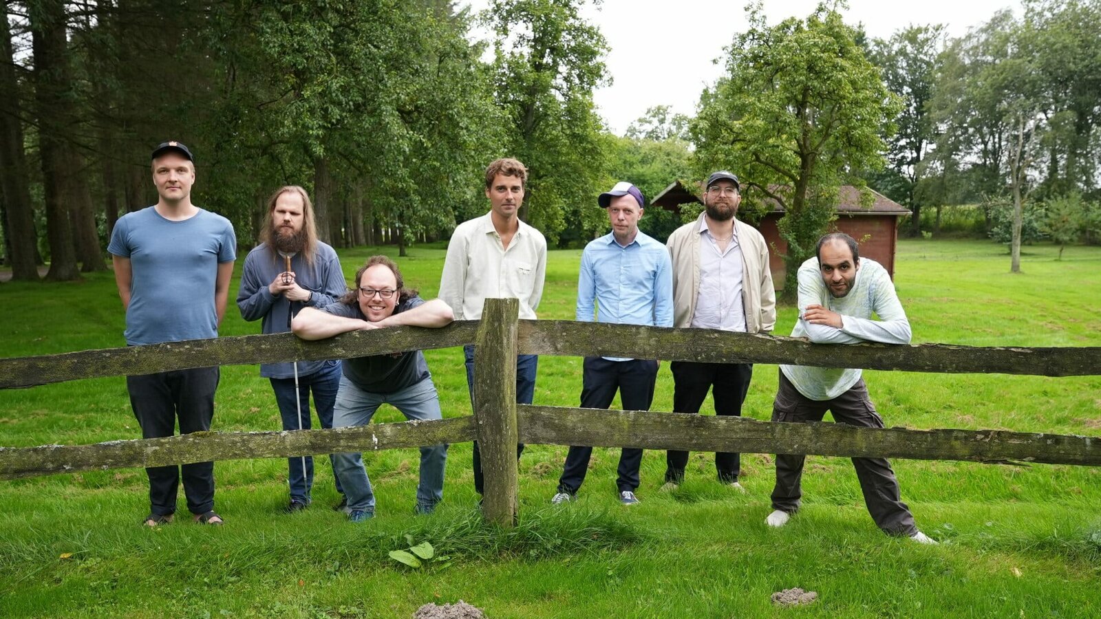 Inklusion rockt: Die Band "Station 17"Die aktuelle Besetzung der Band "Station 17". Aus einem kreativ-sozialen Projekt, das Musiker mit und ohne Behinderung miteinander verbindet, entwickelte sich eine international bedeutende Formation: Drei Jahrzehnte, elf Alben, über 800 Konzerte, Zusammenarbeit mit Künstlern wie Fettes Brot, DJ Koze oder den Toten Hosen. Von den acht Bandmitgliedern ist Sebastian Stuber (2.v.l.) am längsten Teil von "Station 17". Er singt, spielt Synthesizer, hat das absolute Gehör und ist blind.Bild: © ZDF und Lawrence Richards./Lawrence Richards