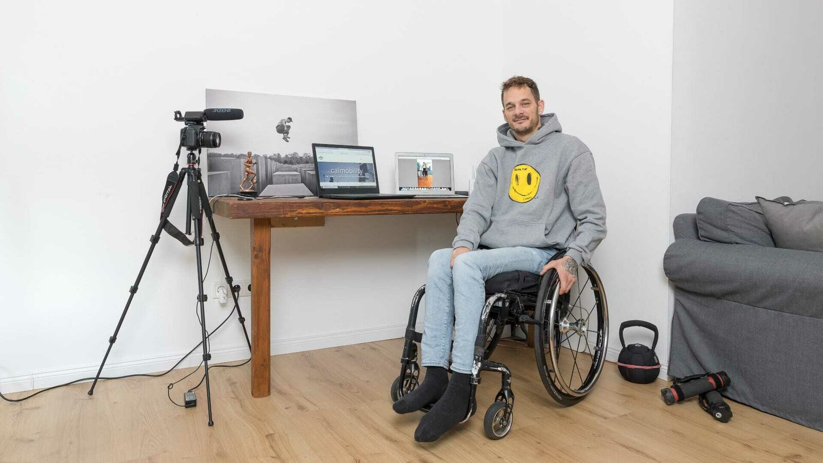 Mut machen!Mut machen! Chris Calm in seinem Wohnzimmer. Er sitzt im Rollstuhl.Bild: © ZDF und Dirk Eisermann.