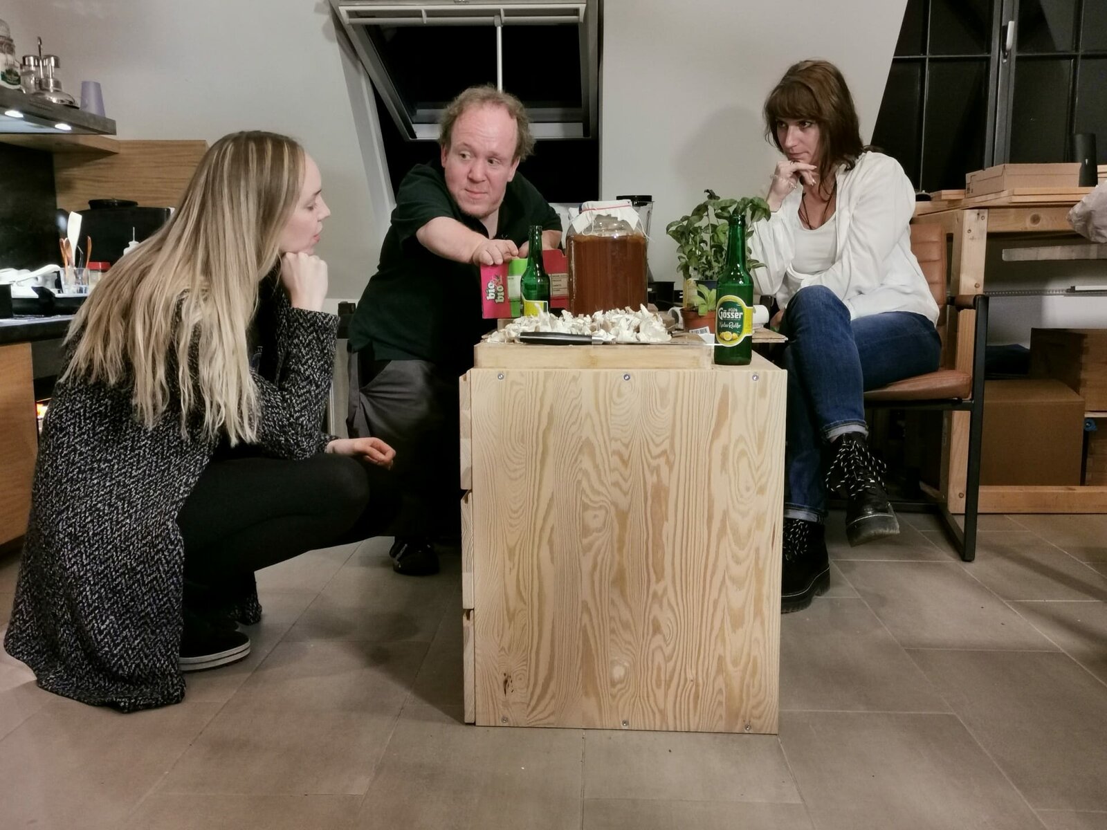 Ich entscheide, was ich kann!Auf einer Wellenlänge: Mit seinen Freundinnen quatscht Martin Müller über alles: Gott und die Welt, Musik und Urlaubspläne, Politik und Gerechtigkeit. Auch im Privatleben setzt Martin Müller auf das Motto "Einfach ausprobieren was geht". In seiner Wohnung ist alles auf seine Körpergröße zugeschnitten.Bild: © ZDF und Marie Koytek.