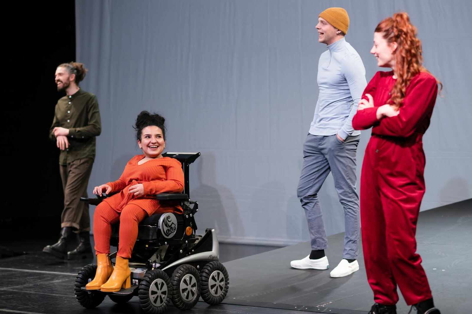 Kübra Sekin: Freie Fahrt für gleiche RechteKübra Sekin (M.) ist Schauspielerin, Moderatorin, "Inkluencerin" und engagiert sich für die "Aktion Mensch".Bild: © ZDF und Marius Becker.