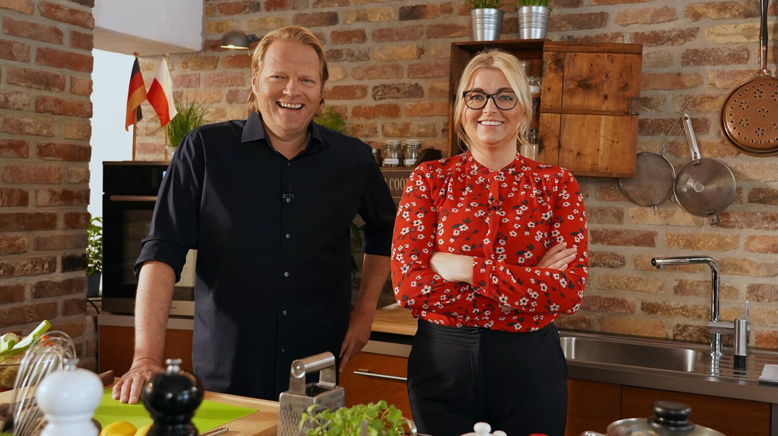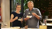 Björn Freitag (r) mit seinem Gast, der polnischen Sterneköchin Agata Reul aus Düsseldorf.Bild: © WDR/Melanie Grande
