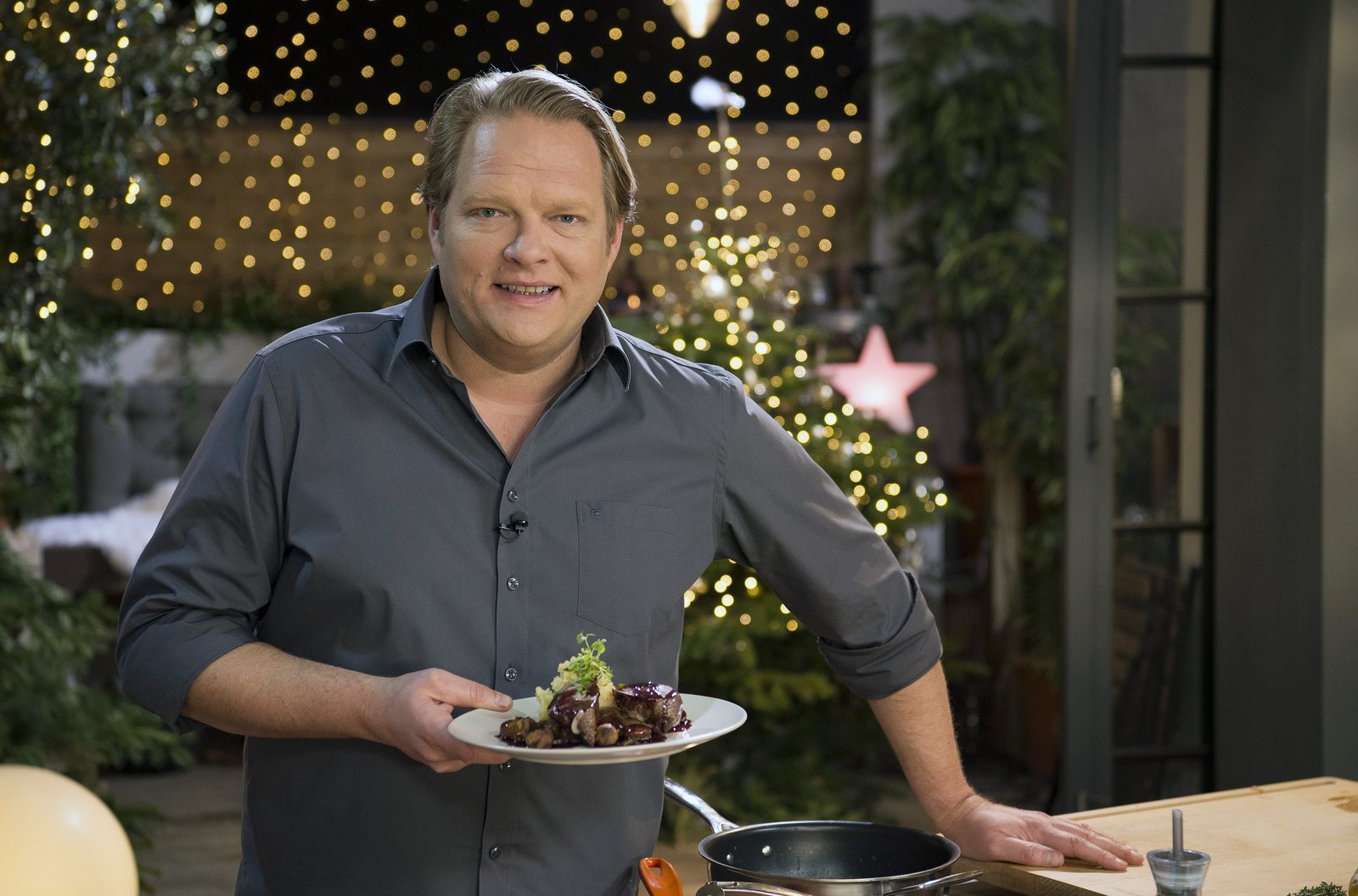Mein kreatives WeihnachtsmenüWeihnachten, der Countdown läuft! Auch Björn Freitag bereitet sich auf den festlichen Abend vor. Lecker soll es sein, einfach zu kochen und doch etwas ganz Besonderes. Als Höhepunkt des Menüs präsentiert Björn Freitag seine Roulade vom Hirschrücken mit lockerem Bratapfelpüree und Maronen.Bild: © WDR/Melanie Grande