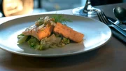 Das Beste vom NiederrheinKonfierter Lachs mit Endiviengemüse.Bild: © WDR/talpa GmbH