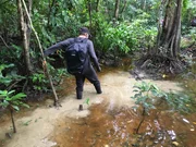 «Einstein» im Reich der Orang-Utans, Teil 1Kameramann Simon Usteri folgt den Orang Utans:(Copyright SRF)Bild: © ZDF und SRF.