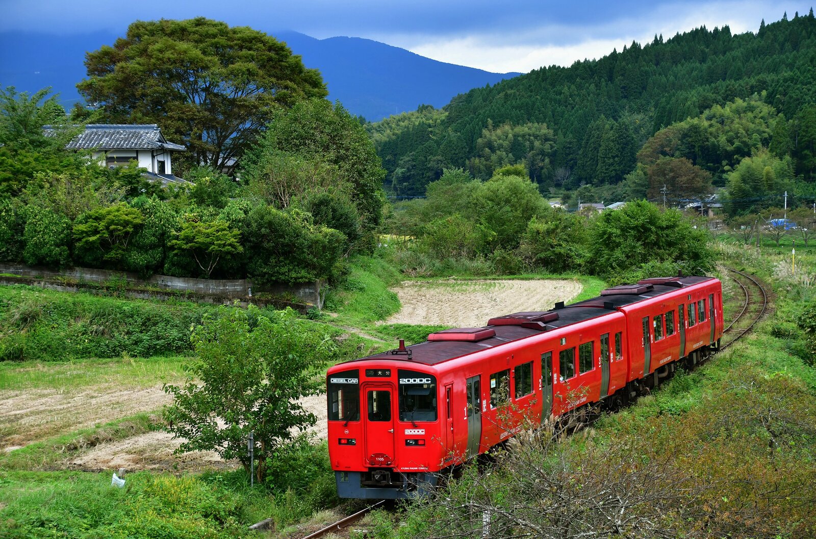 Kyushu - Auf schmaler Spur durch Japans SüdenEin schmalspuriger Nahverkehrszug auf dem Lande. - Die ländlichen Regionen werden von zahlreichen Nebenbahnlinien erschlossen.Bild: © SWR