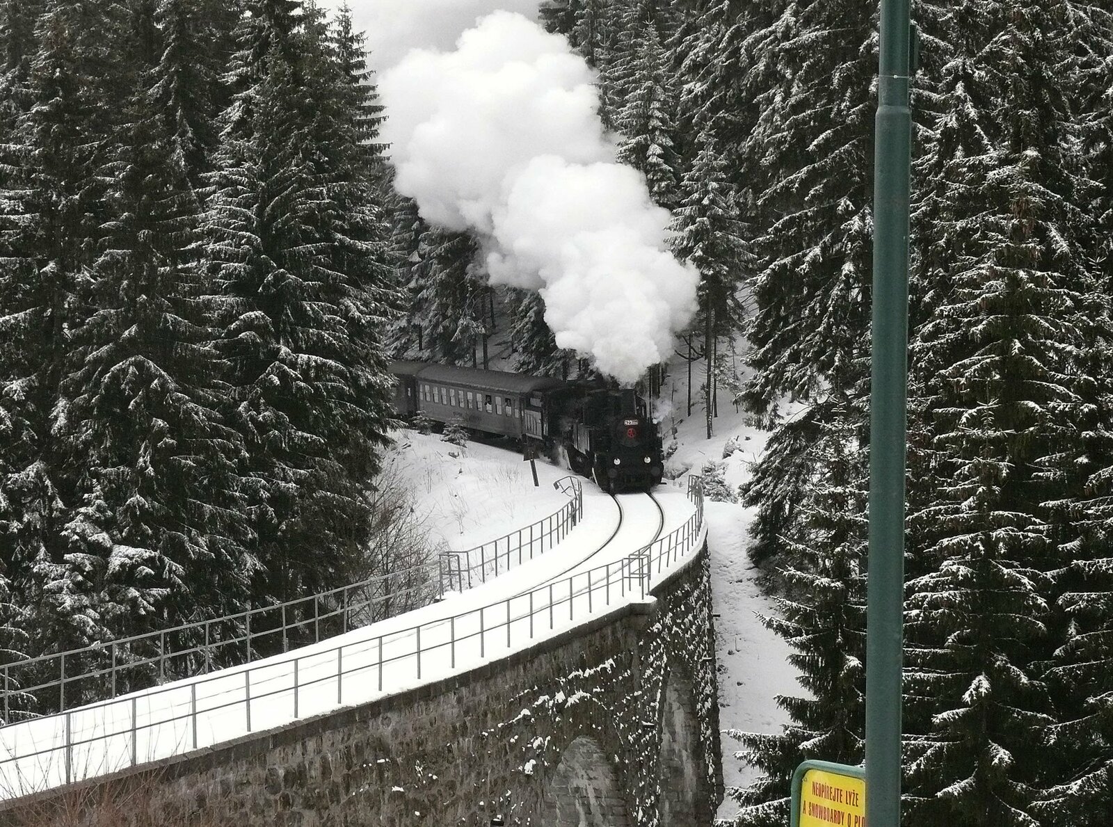 Dampfromantik in der Abendsonne - Ein tschechisch-deutsches WintermärchenMit Volldampf durch das Skigebiet von Pernink.Bild: © SWR/Scheuble