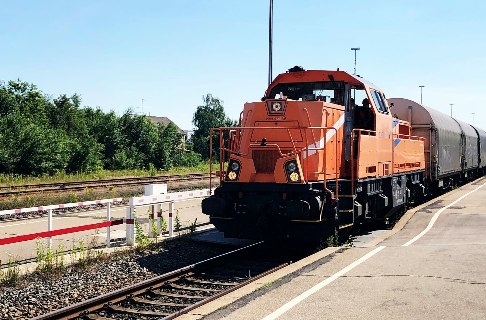 Die Biberbahn - Neubeginn zwischen Bodensee und DonauGüterzug im Bahnhof Mengen. Mehrmals in der Woche fährt ein Güterzug die Werke der Firma Tegometall in Krauchenwies und Sauldorf an. Dem Güterverkehr ist es zu verdanken, dass die Strecke heute reaktiviert werden kann.Bild: © SWR/Alexander Schweitzer