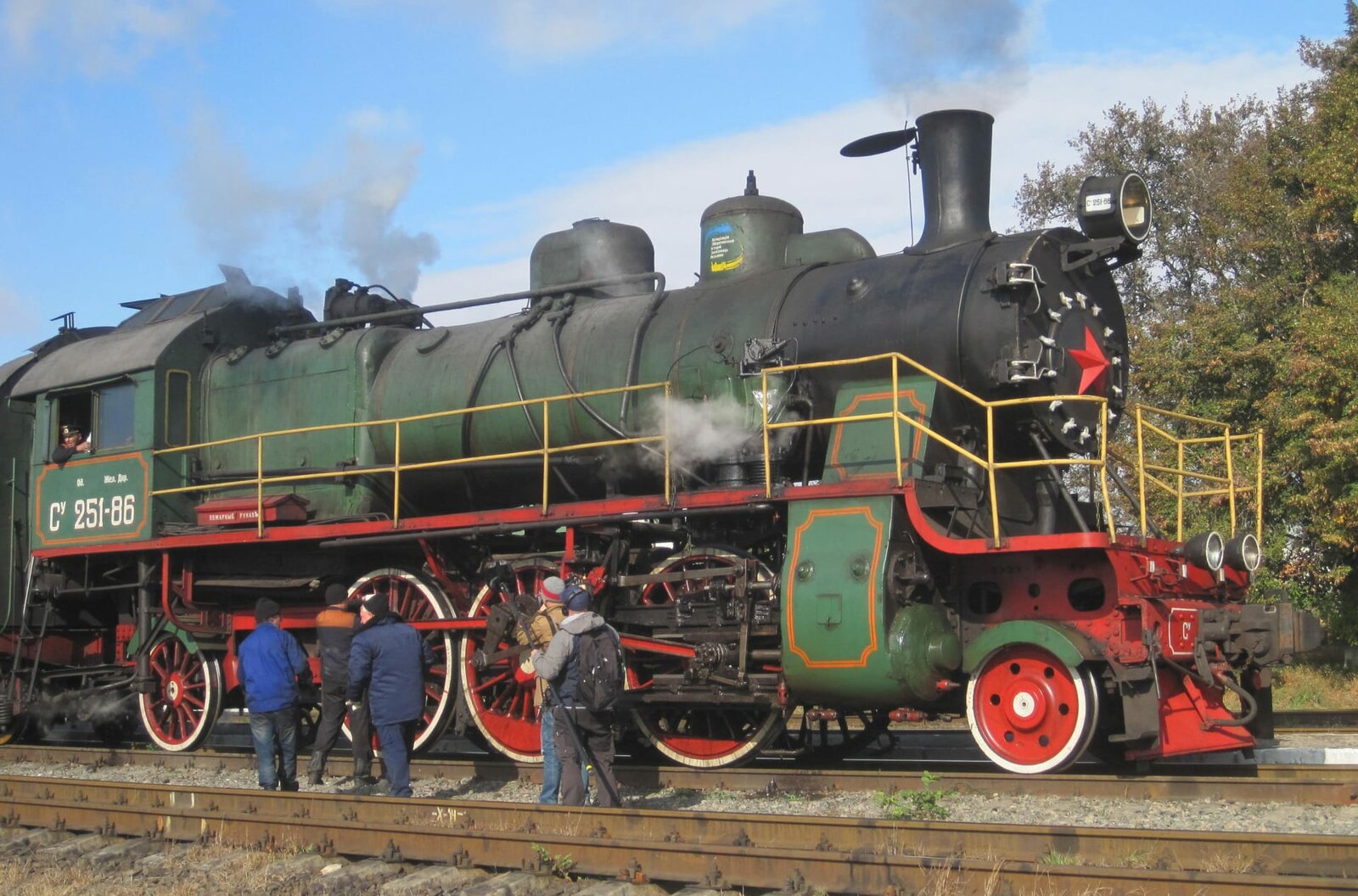 Dampfreise in die KarpatenIm Provinzbahnhof Ladyschyn mitten in der Zentralukraine beginnt ein mehrtägiges Bahnabenteuer. Über zweieinhalb-tausend mal wurde im sowjetischen Nischni Nowgorod die Baureihe SU hergestellt. Nur vier Exemplare sind heute noch betriebsfähig.Bild: © ZDF und SWR.