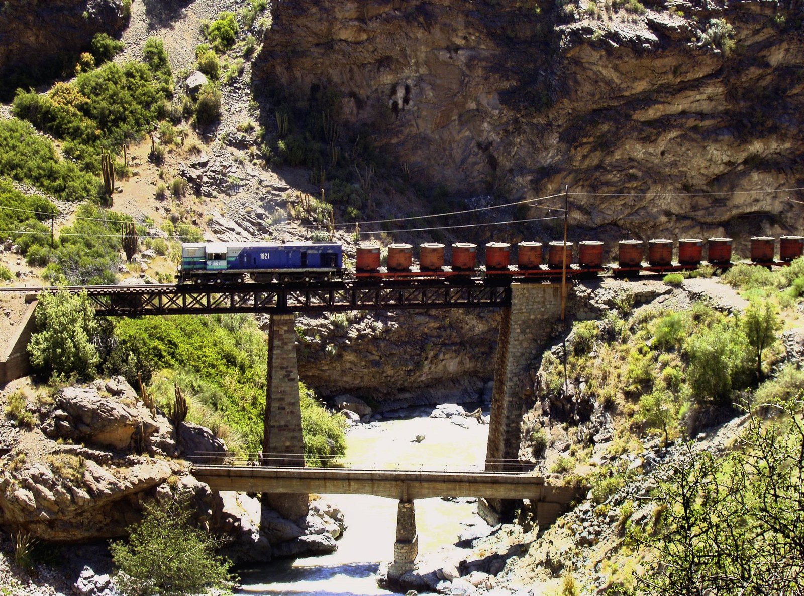 Die Kupferzüge vom Rio BlancoEin Kupferzug überquert den Rio Blanco.Bild: © SWR