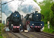 Dampfspektakel Trier und Abschied bei der WaldenburgerbahnDie Lok 528154-8 und die Lok 031010 bei der Doppelausfahrt in Trier.Bild: © SWR/Joachim Schmidt