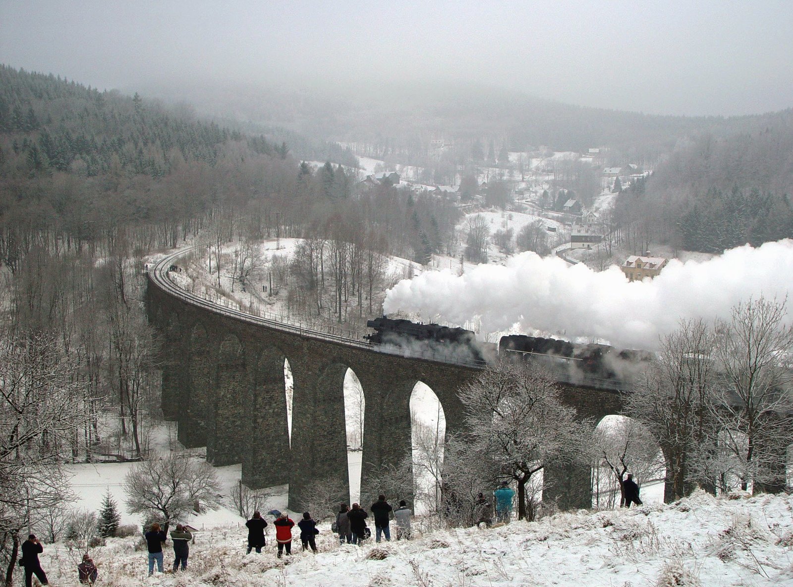 Dampfreise zum Rübezahl"Rübezahls Brücke" hinter Novina: Länge 200m, Höhe 30m, 9 Brückenköpfe.Bild: © SWR