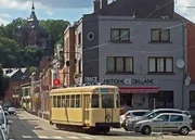 Die Straßenbahnen von ThuinMitten durch das Städtchen Thuin fährt auf einer ehemaligen Vizinallinie eine historische Straßenbahn aus dem Jahr 1958.Bild: © SWR