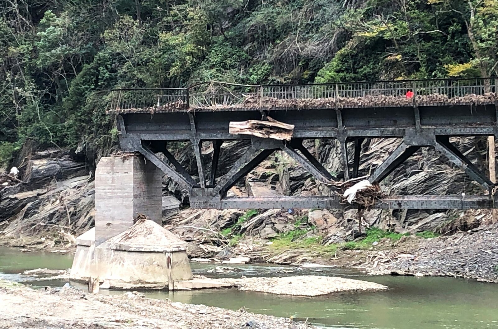 Nach der Flut - Neubeginn zwischen Ahr und EifelDas Hochwasser an der Ahr war an manchen Stellen bis zu acht Meter hoch. Hier stieg es bis zum Geländer der Eisenbahnbrücke.Bild: © SWR/Alexander Schweitzer