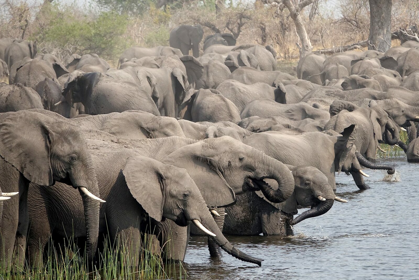 Ungewöhnliche NachbarnGrenzgänger: Im Dreiländereck von Botsuana, Sambia und Simbabwe kommt es oft zu langen Staus. Die LKWs blockieren die traditionellen Zugwege der Elefanten. Intelligent und anpassungsfähig, finden die Tiere dennoch einen Weg.Bild: © ART