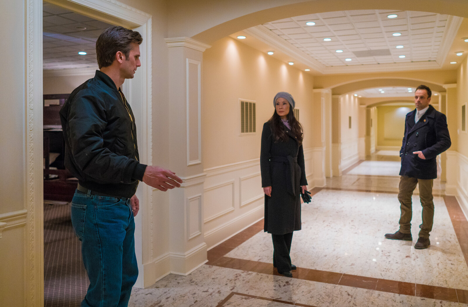 Bereit oder nichtHat Ronnie Wright (Frederick Weller, l.) etwas mit dem Verschwinden eines Arztes zu tun? Holmes (Jonny Lee Miller, r.) und Watson (Lucy Liu, M.) jedenfalls glauben, dass er etwas verbirgt ...Bild: © 2016 CBS Broadcasting Inc. / Michael Parmelee / Michael Parmelee
