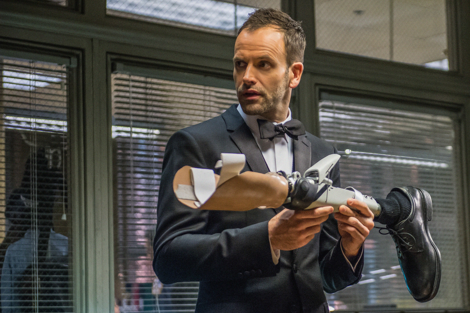 KopflosEr hat den siebten Sinn in Sachen Verbrechensaufklärung: Kaum nimmt Sherlock Holmes (Jonny Lee Miller) die Beinprothese eines Verdächtigen in die Hand, schon öffnet sich bei dieser ein Geheimfach ...Bild: © ProSieben Media AG © CBS Television