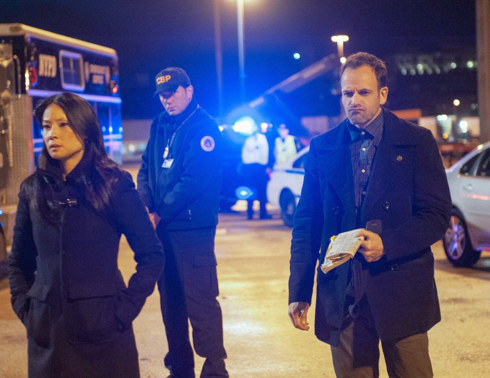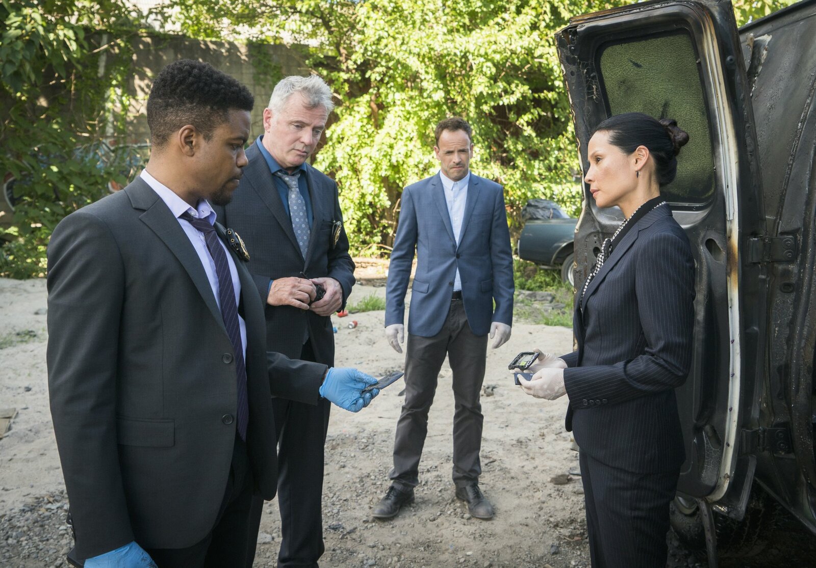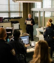 Gefahr aus dem WeltraumDas NYPD ist äußerst berührt von Gregsons (Aidan Quinn, M.) Rede. Aber gelingt es Joan und Sherlock auch endlich, den Mörder von Russel Cole ausfindig zu machen?Bild: © 2016 CBS Broadcasting, Inc. All Rights Reserved / Michael Parmelee Lizenzbild frei