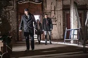 Die PrüfungSherlock Holmes (Jonny Lee Miller, r.) versucht herauszufinden, wer die Tochter seines ehemaligen Drogenhändlers Rhys (John Hannah, l.) entführt hat, während sich Joan Watson (Lucy Liu, M.) über seine Abstinenz große Sorgen macht ...Bild: © CBS Television Lizenzbild frei