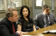 PulverfassGemeinsam sind sie unschlagbar: das Ermittler-Team um Sherlock Holmes, Capt. Thomas Gregson (Aidan Quinn, l.), Dr. Joan Watson (Lucy Liu, M.) und Det. Marcus Bell (Jon Michael Hill, r.) ...Bild: © ProSieben Media AG © CBS Television