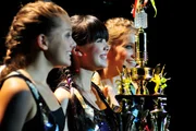 FinaleDie Mädchen träumen davon, die Trophäe zu gewinnen. V.l.:Emma (Sophie Karbjinski), Jackie (Charlotte Nicdao) und Ally (Marny Kennedy).Bild: © NDR/Southern Star