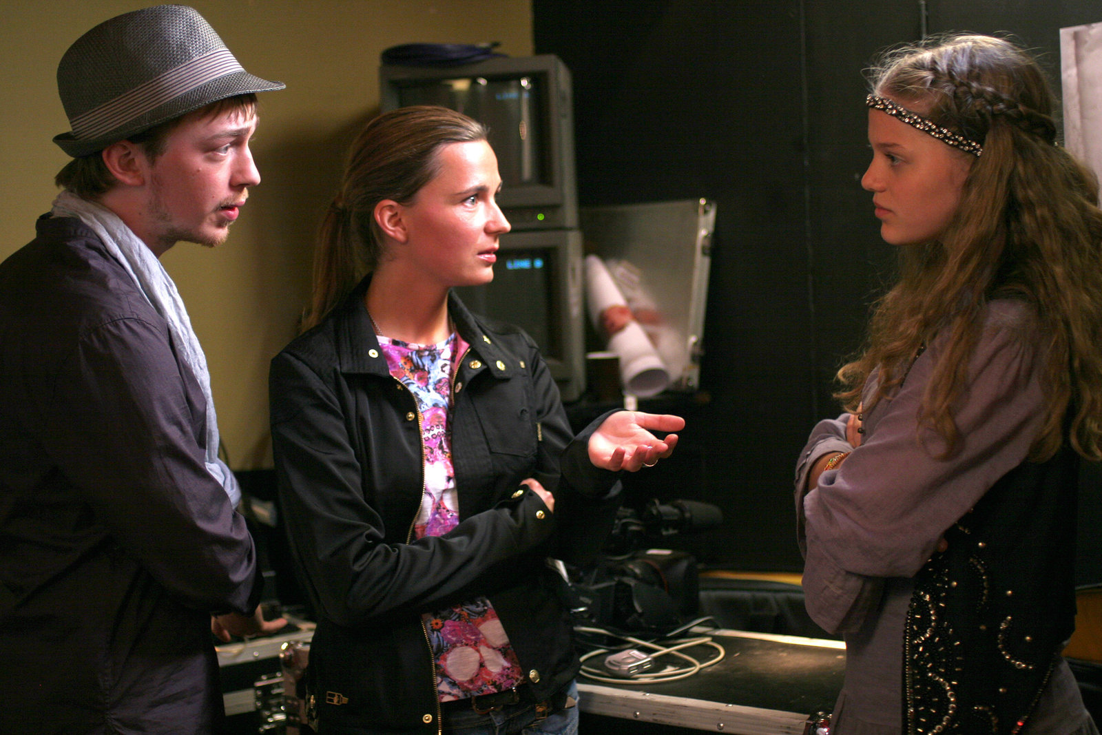 Endlich Ferien?ARD/NDR EMMAS CHATROOM, FOLGE 21, "Endlich Ferien?", am Sonntag (28.12.14) um 05:55 Uhr im ERSTEN. v.l.n.r.: Trotz aller Schwierigkeiten stehen Emma (Sophie Karbjinski), Ally (Marny Kennedy) und Jackie (Charlotte Nicdao) pünktlich auf der Bühne.Bild: © NDR/Southern Star