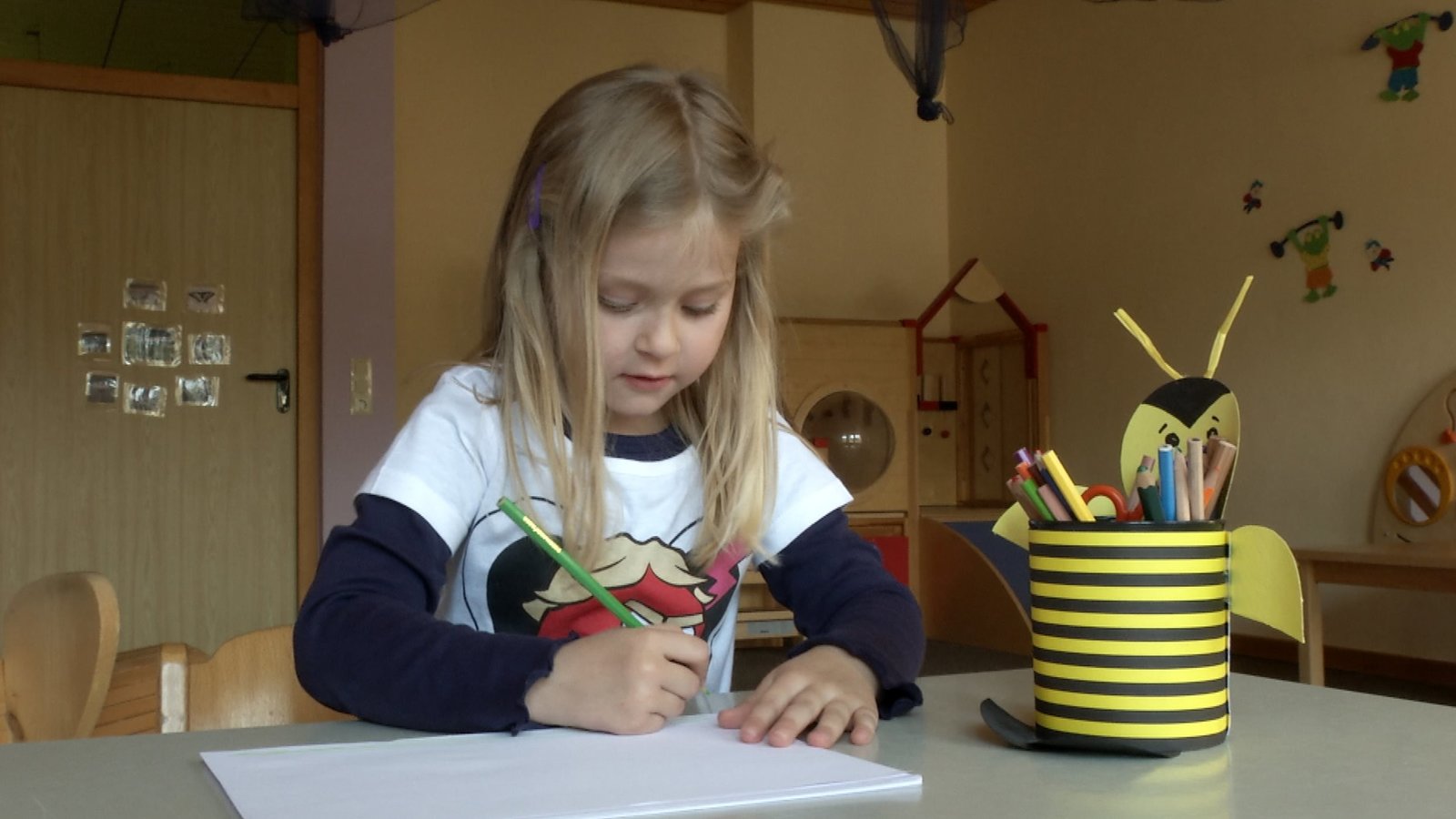 Astrid malt mit Buntstiften.Bild: © KiKA