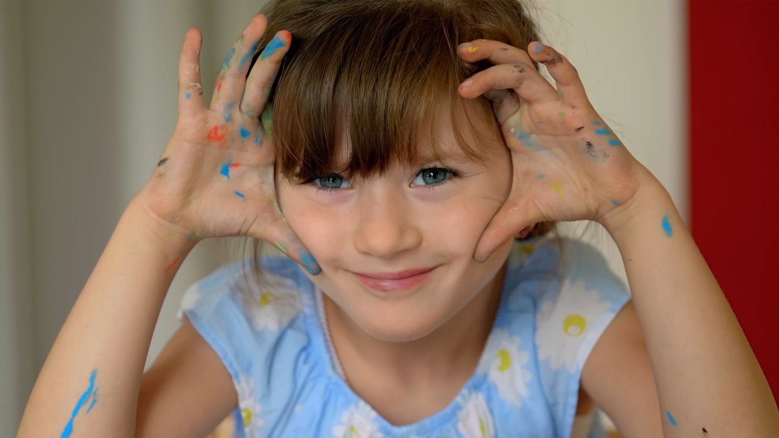 Charlotte mit bunten Fingern.Bild: © KiKA/Motion Works GmbH