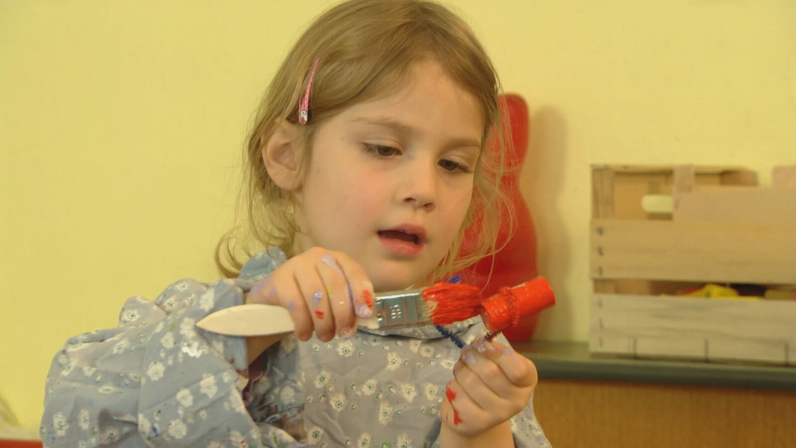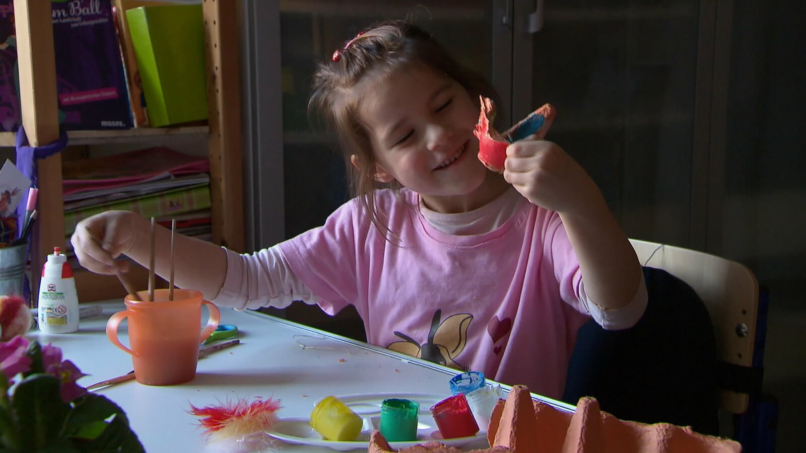 Luisa bemalt ihr Osterhuhn.Bild: © KiKA