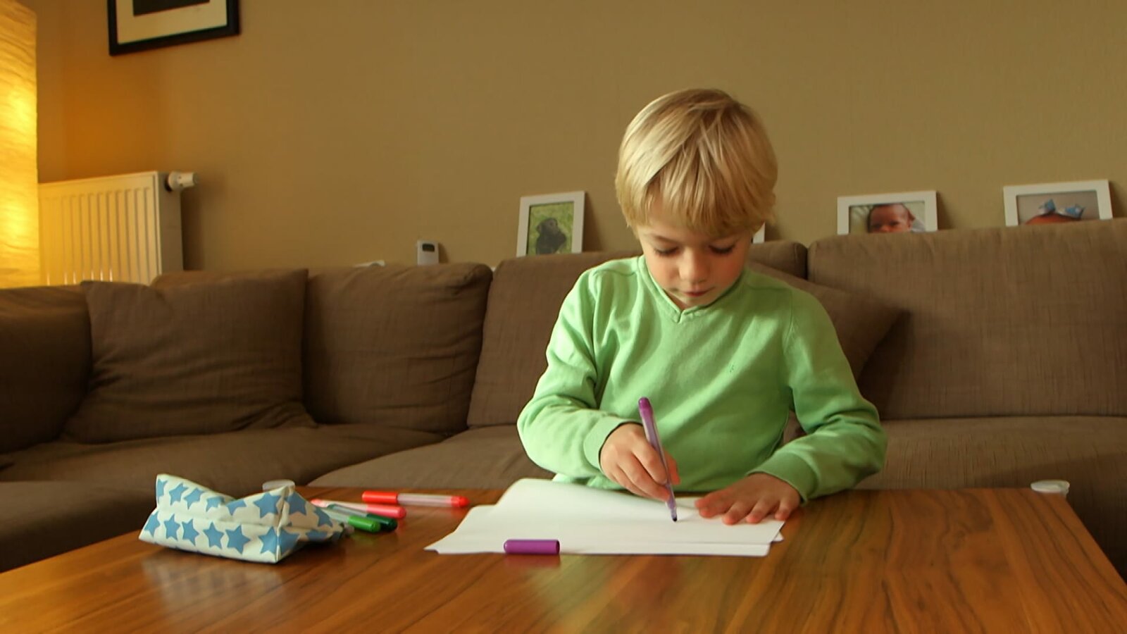 Johann malt mit einem Filzstift.Bild: © KiKA