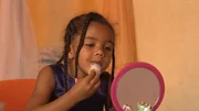 Victorine schminkt sich ein Clowngesicht.Bild: © KiKA