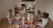 Ida, Antonia und Fabienne bemalen Pappteller mit Farbe.Bild: © KiKA/Motion Works GmbH