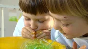 Linus und Lasse malen mit Seifenblasen.Bild: © KiKA