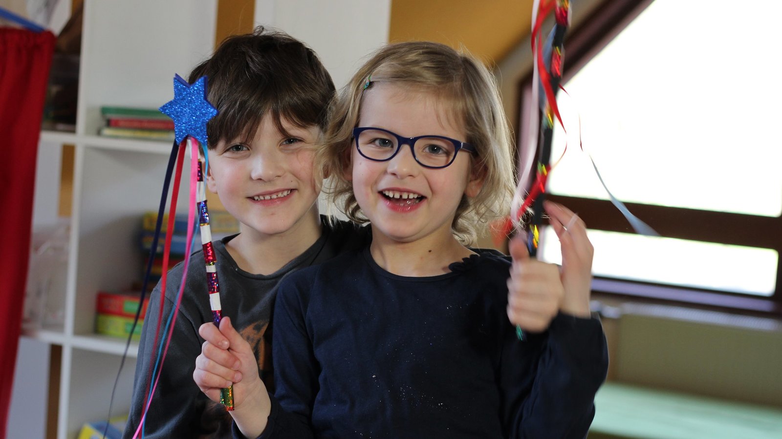 Jan und Suvi schwingen ihre Zauberstäbe.ÂBild: © KiKA