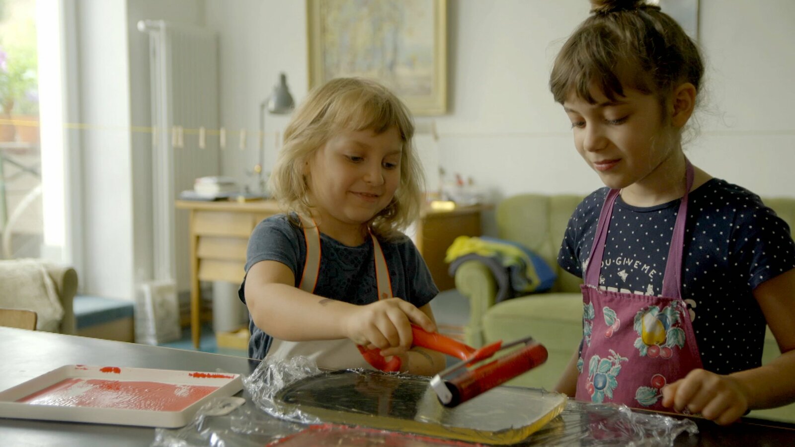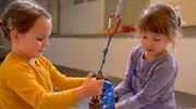 Emelie und Frida füllen Farbe in das Pendel.Bild: © KiKA/Motion Works GmbH
