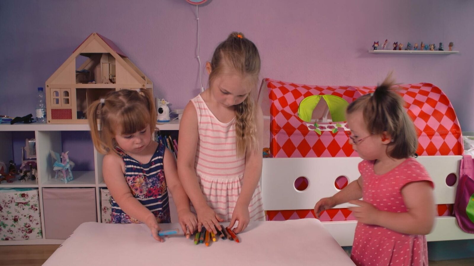 Paula, Emma und Anna packen ihre Stifte aus.Bild: © KiKA/Motion Works GmbH