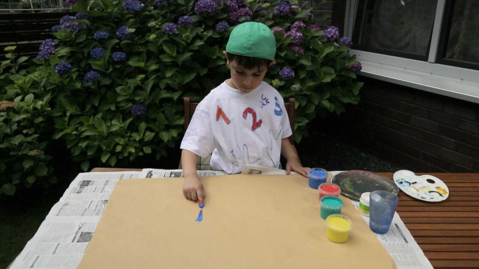 Gökay malt mit Fingermalfarben.Bild: © KiKA