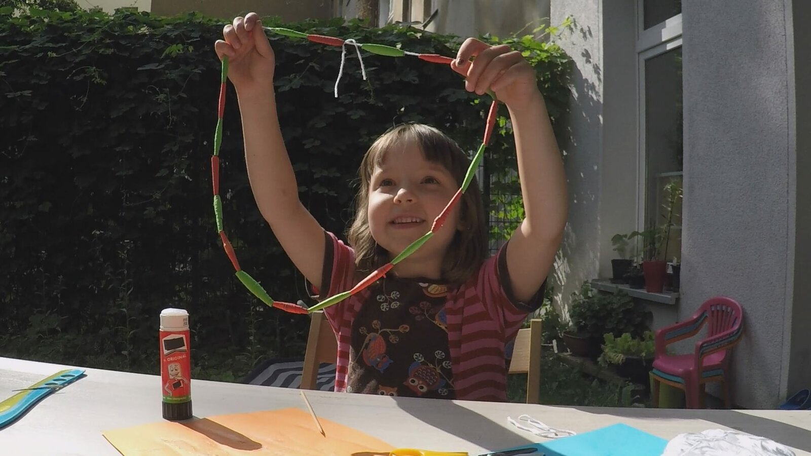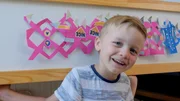 Anna zeigt ihre Papierkette.Bild: © KiKA