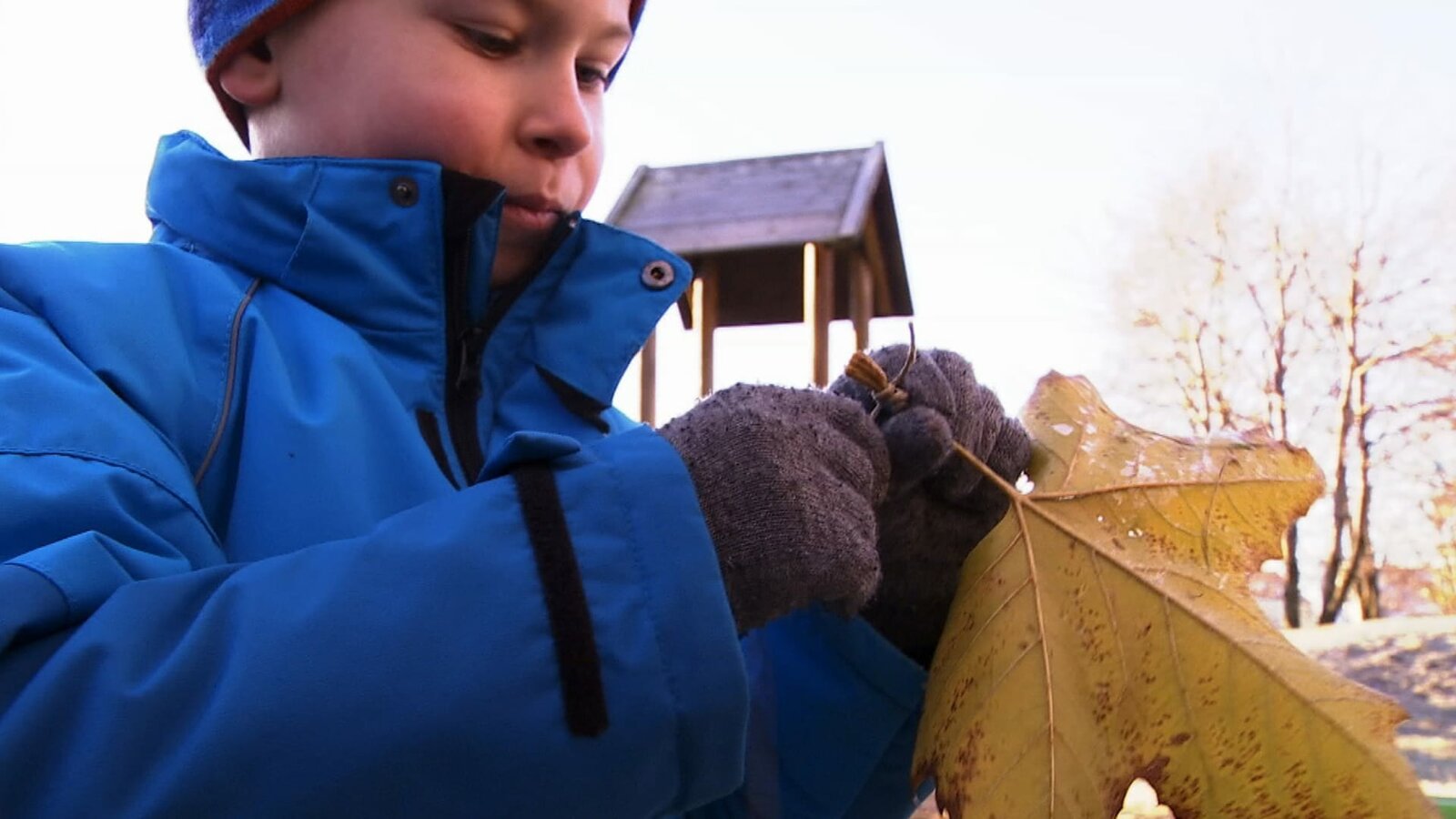Eric überprüft seinen Blätterdrachen.Bild: © KiKA