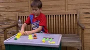 Felix zeigt, wie man ein Floß aus Korken baut.Bild: © KiKA