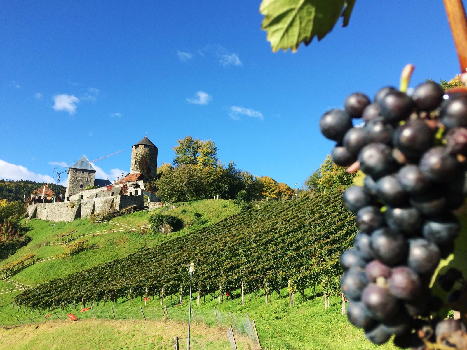 Weiße Pferde, blaue Reben - In der Heimat der Lipizzaner und des SchilchersBurg Deutschlandsberg mit Weingarten.Bild: © ORF III