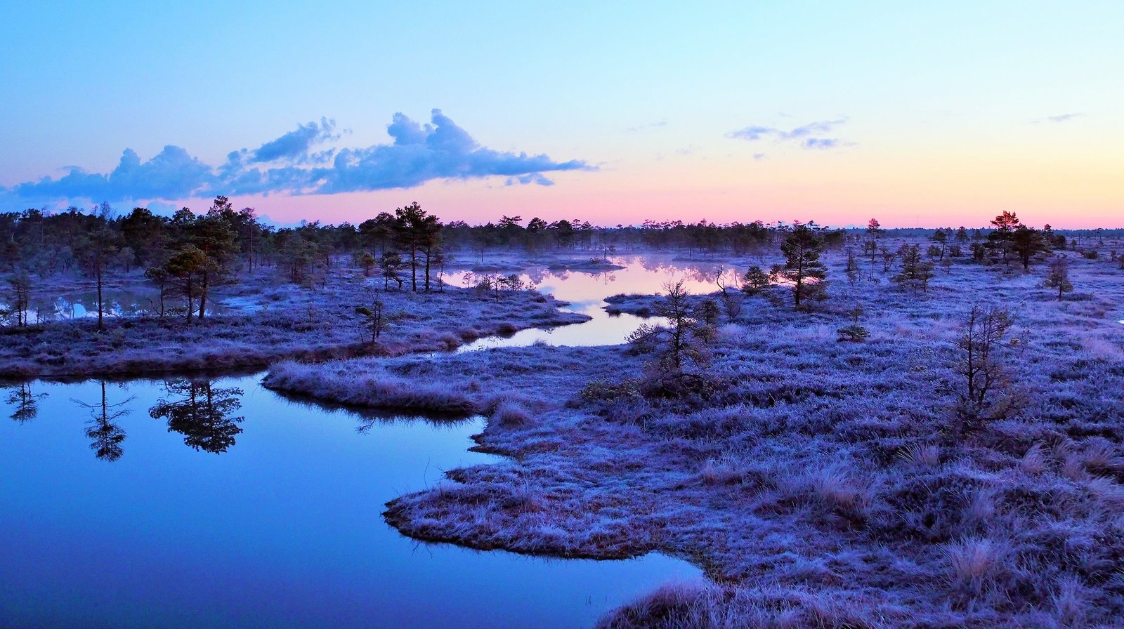 Die Elche von Matsalu - Estlands wilde RiesenLandschaft Matsalu in Morgenstimmung. Bald bricht der Winter an und die Elche müssen die Matsalu Bucht verlassen, denn die überfluteten Sumpflandschaften frieren zu und bieten ihren Hufen keinen Halt mehr.Bild: © WDR/Joosep Matjus/Atte Henriksson