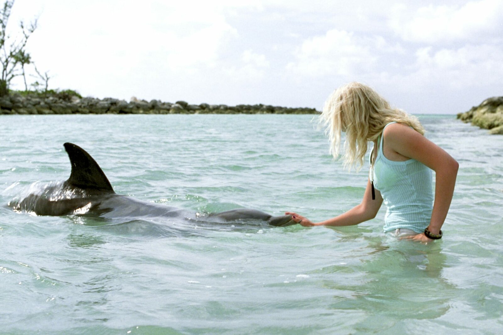 Die Delfinflüsterin - Vor Irlands wilder KüsteSeitdem ihre Mutter vor einem Jahr gestorben ist, lebt die 14 Jahre alte Alyssa (Carly Schroeder) bei ihrer Großmutter Lucy (Katharine Ross). Doch dann entscheidet Lucy, dass Alyssa auf die Bahamas ziehen soll, wo ihr Vater Hawk (Adrian Dunbar) als Delphinforscher lebt und arbeitet. Allerdings hat Alyssa ihren Vater noch nie im Leben gesehen ... Bild: Alyssa (Carly Shroeder) mit Delphin.Bild: © MDR/Paradise Productions