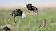 Planet der Liebe (1): Unter aller AugenBalzende Kampfläufer hüpfen in die Luft und schlagen mit den Flügeln, um die Aufmerksamkeit von vorbeifliegenden Weibchen zu erregen.Bild: © NDR/Doclights Naturfilm/Silverback Films