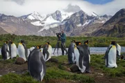 Kameramann Roland Gockel filmt brütende Königspinguine.Bild: © NDR/Roland Gockel