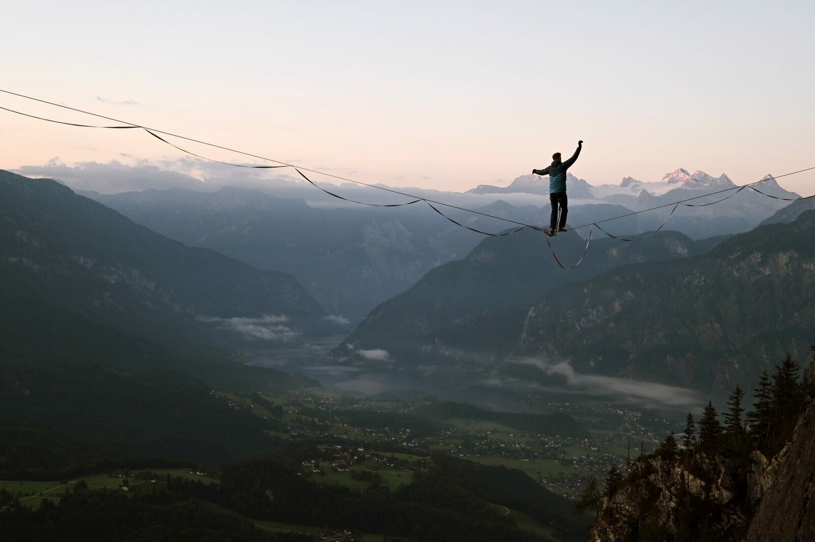 Michi Monz aus Bad Ischl auf einer 100 Meter-Highline am Gipfel des Predigtstuhles.Bild: © ORF/ORF-OÖ/Heli Putz