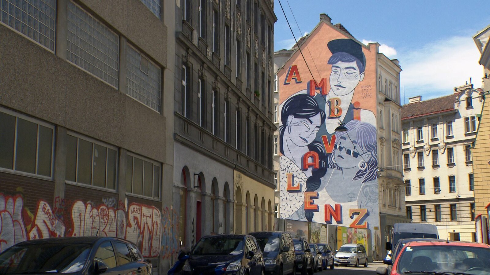 Straßenkunst (im 5.Bezirk) von einem Frauenkollektiv.Bild: © ORF