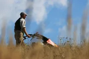 Naturraummanager Markus Ehrenpaar (Naturschutzbund Steiermark) bei pflanzenschonender Mahd in Aug Radisch.Bild: © ORF/Posch TV Filmproduktion/Christian Stoisser